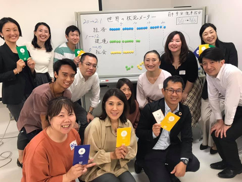 SDGs ゲーム体験を通して、今の地球環境や課題を知り、同時に市民も政府も企業も、それぞれが取り組んでいる、グッドプラクティス(実践事例)も増え続けていることも知る。